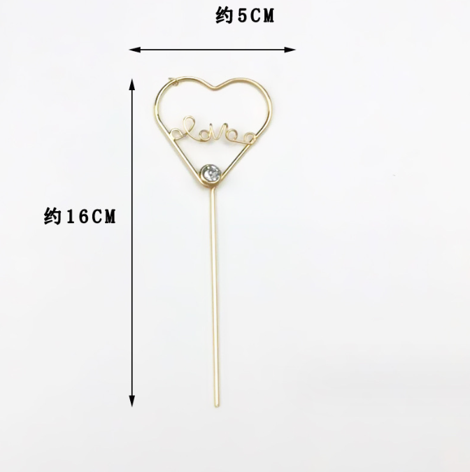 Home Toppers 1 pcs golden metal heart love topper