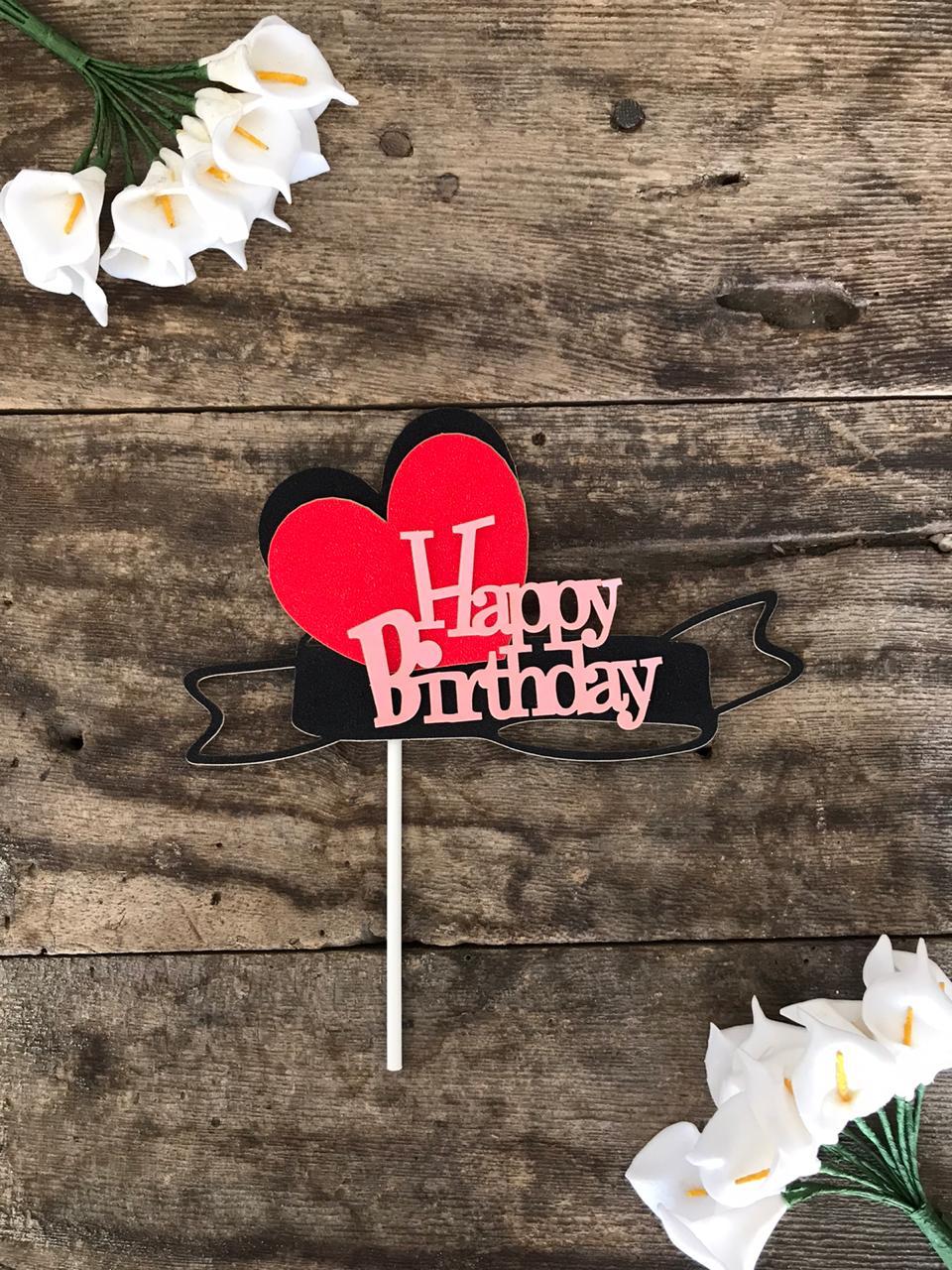 1 pcs happy birthday with double heart cake topper