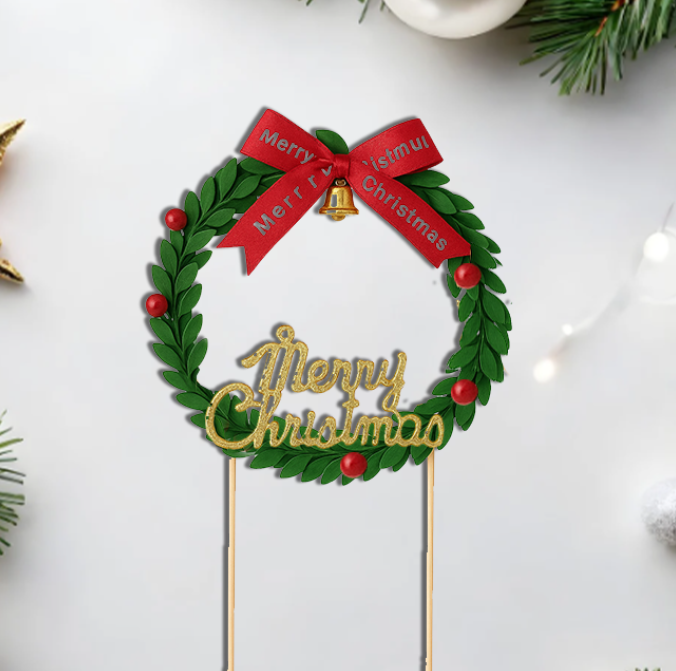1 pcs Large Garland theme Merry Christmas Cake Topper style 2