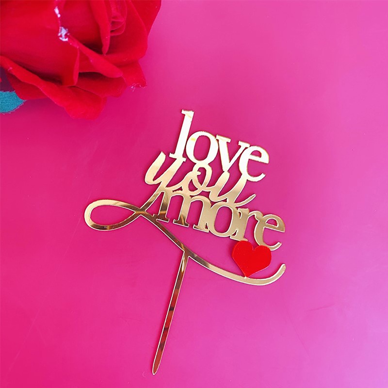 Home Toppers 1 pcs Love you more with red heart cake topper