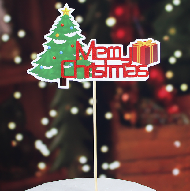 1 pcs Merry Christmas with Christmas tree acrylic cake topper