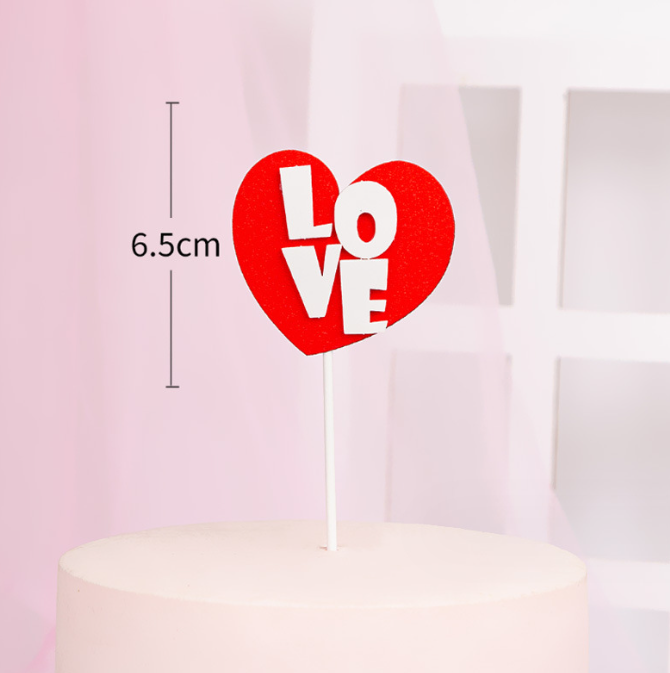 Home Valentine Toppers 1 pcs red heart with love cake topper