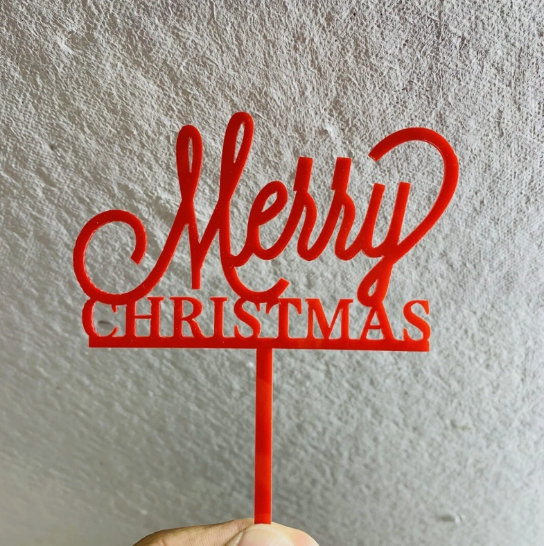 1 pcs Red Merry Christmas acrylic cake topper Style 26
