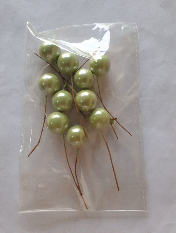 10 pcs Metallic Light Green round 1 cm diameter faux balls