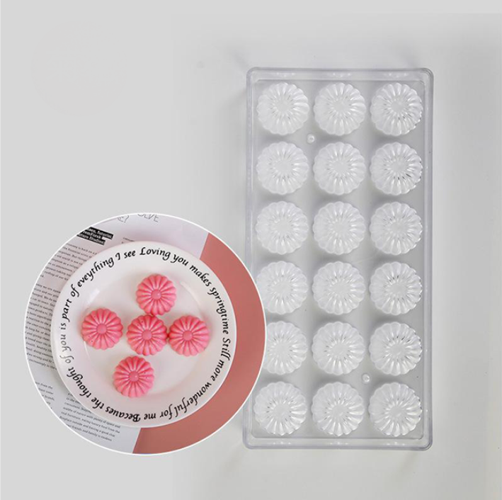 Home polycarbonate chocolate moulds 18 Cavity Flower Shape Polycarbonate Chocolate Mould Style 2