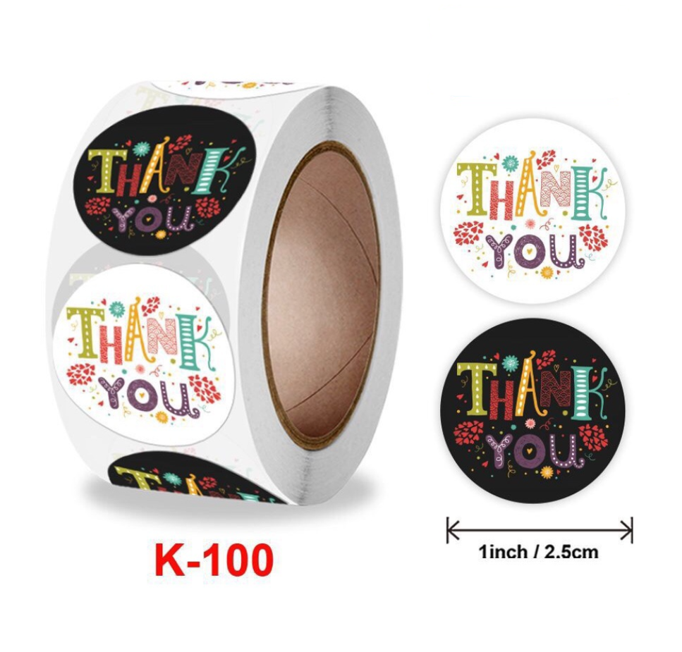 8 different theme thank you Stickers Roll 1 Inch diameter 500 sticker roll