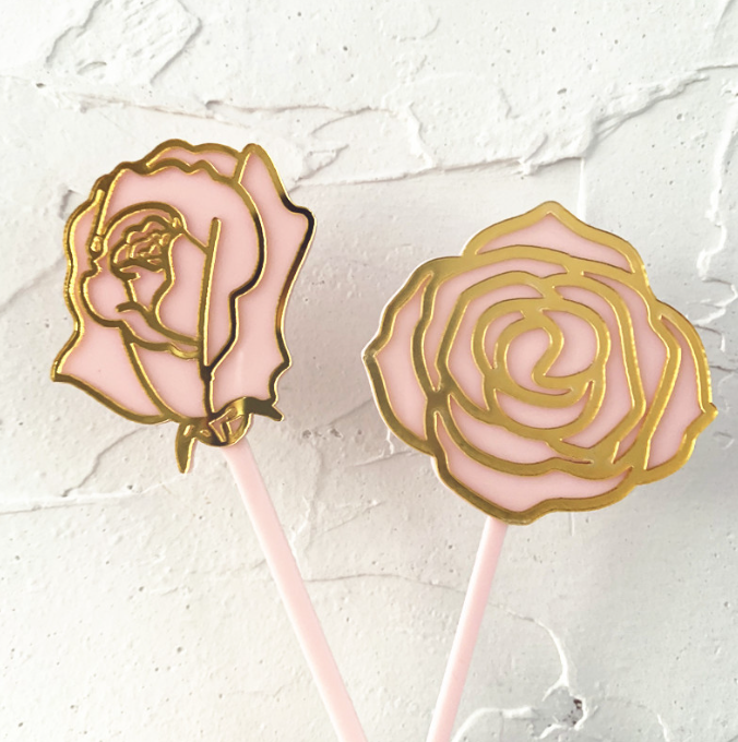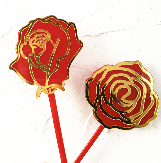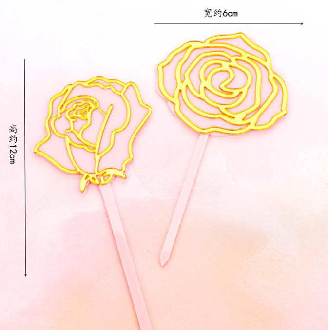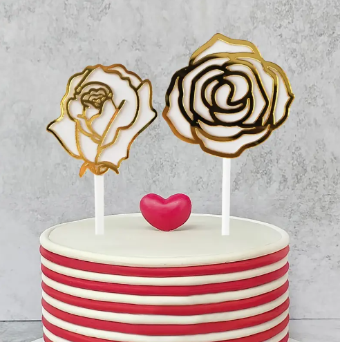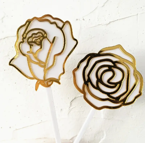 2 Pcs Acrylic Rose cake topper set