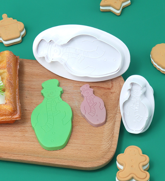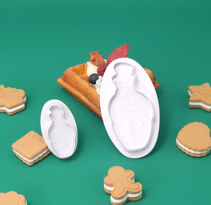 2 pcs Christmas snowman cookie plunger set