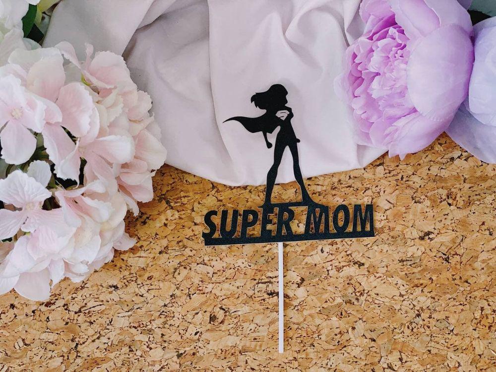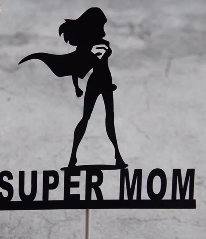 2 pcs Super mom lady black cake topper