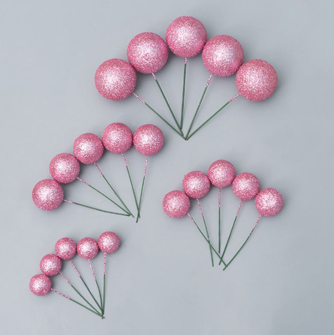 20 pcs Glitter pink round mixed sizes faux balls