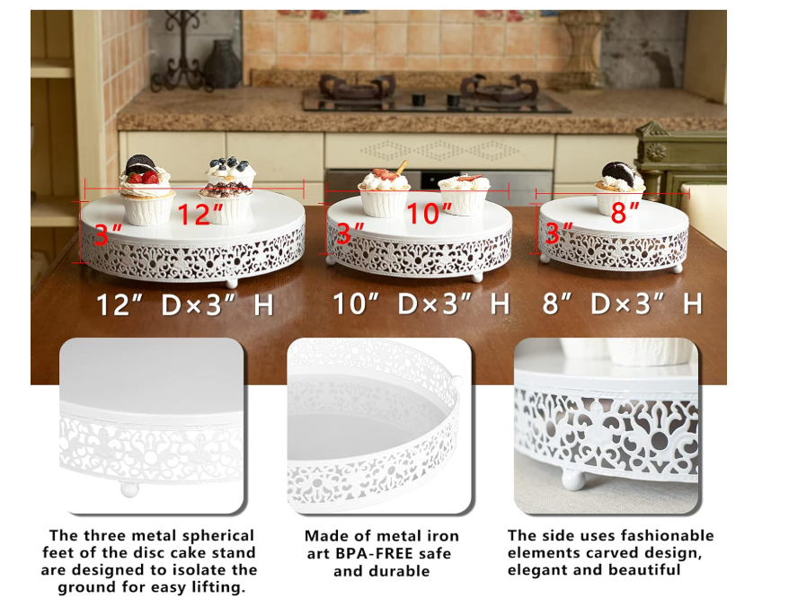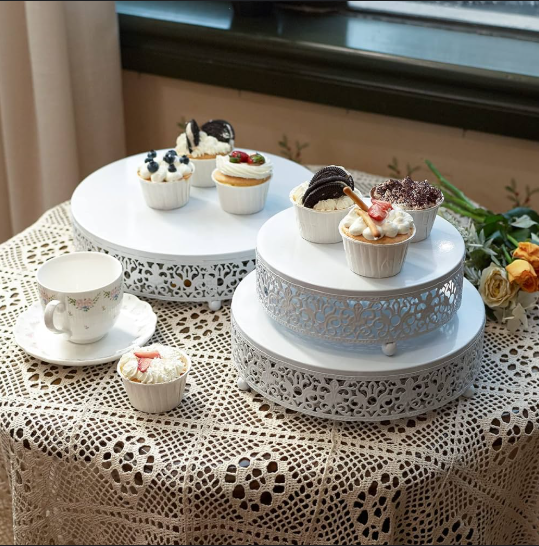 Home Turnable Table and Cake Stand 3 pcs Classic White Cake Stand, 7.8”/9.8”/11.8” Cake Stands for Dessert Table set