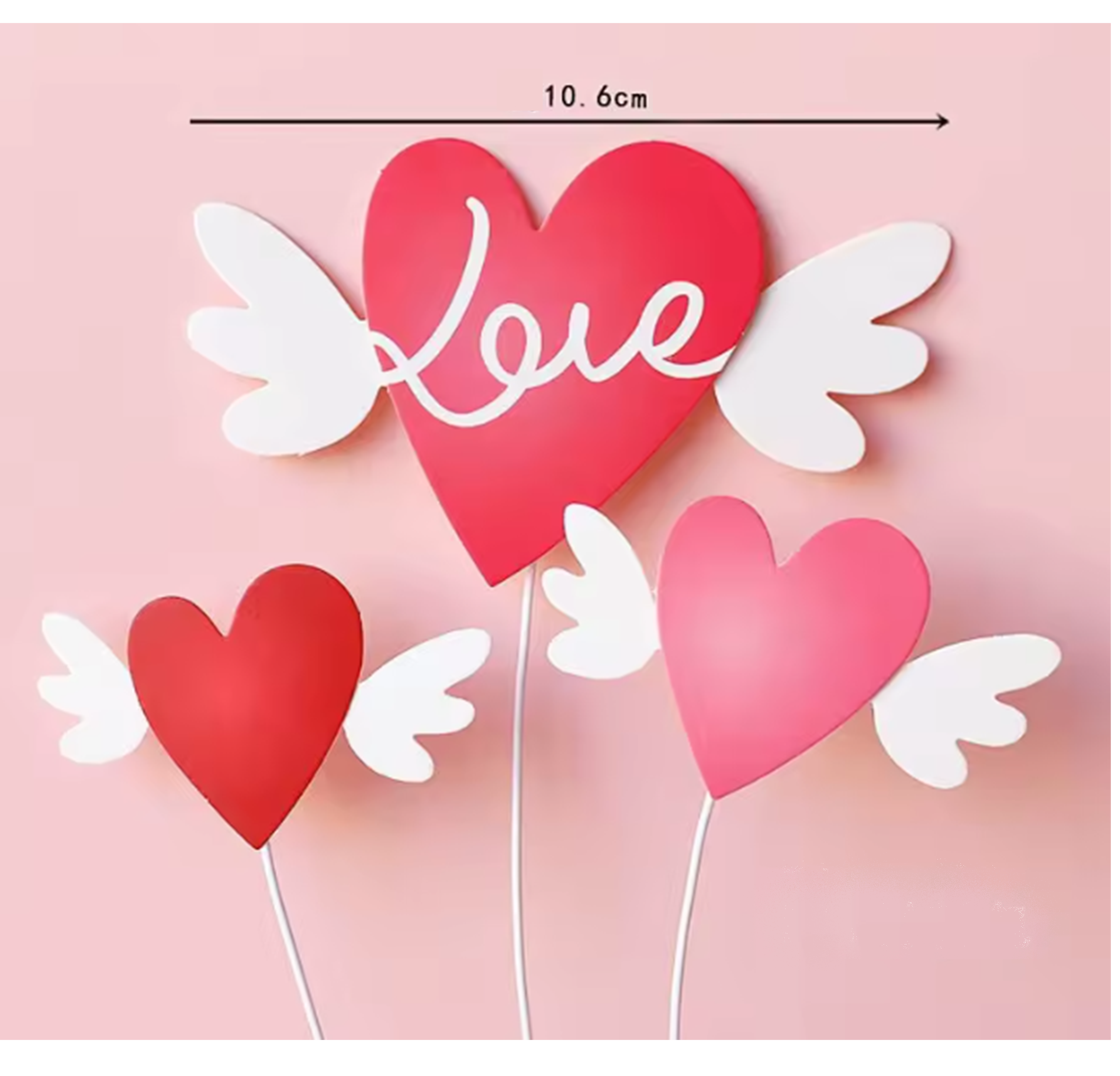 Home Toppers 3 pcs Love heart with wings cake topper set STYLE 1