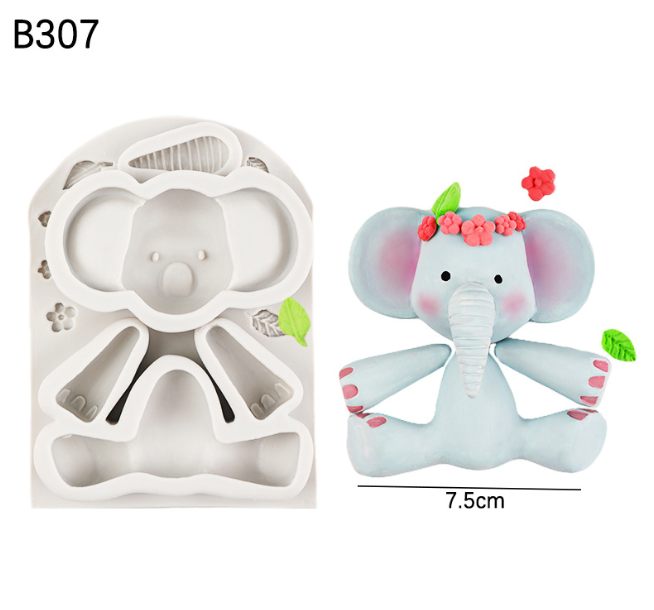 Home Animals & Teddy Molds 3D Elephant Animal silicone mould