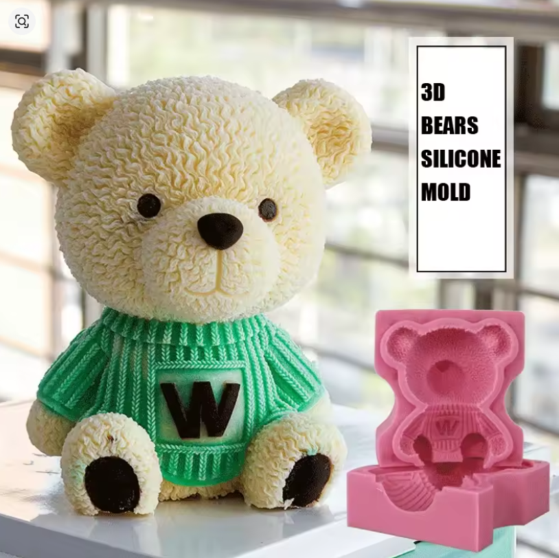 3D Teddy Bear Silicone Mould- for Candle, Fondant, Chocolate
