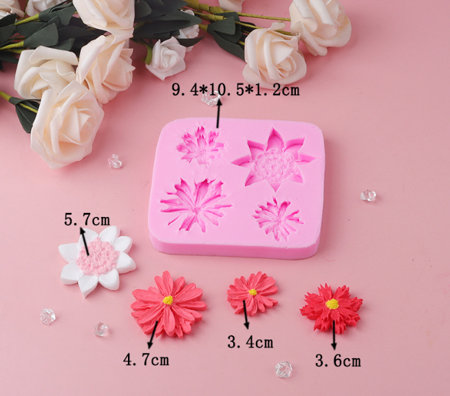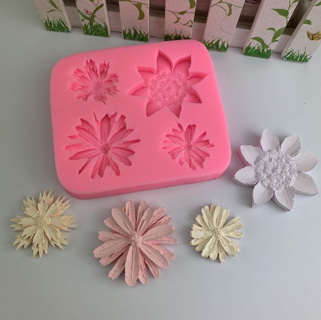 Home Soap Moulds 4 Cavity 3D flower silicone mould