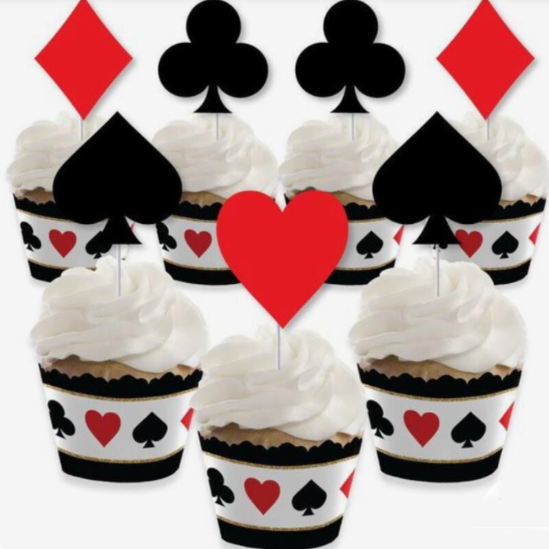 4 pcs Casino Poker Party, diwali cards party for Cupcake Toppers snack sticks