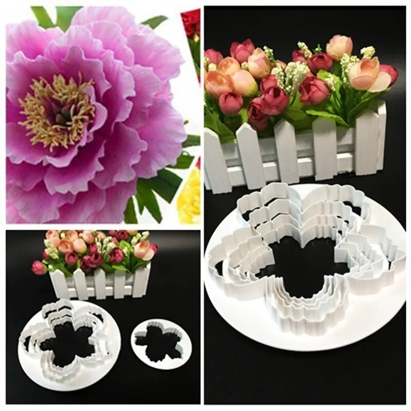 4Pcs/set Peony Durable Sugar Embosser Fondant Cake Mold Cutter Cookie Decorating Fandont Baking & Cake Tools Gift