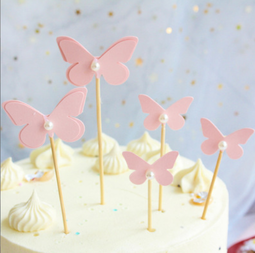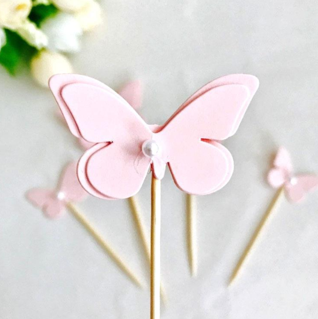 Home Butterfly Topper 5 pcs Pink Pearl Studded Butterfly topper set