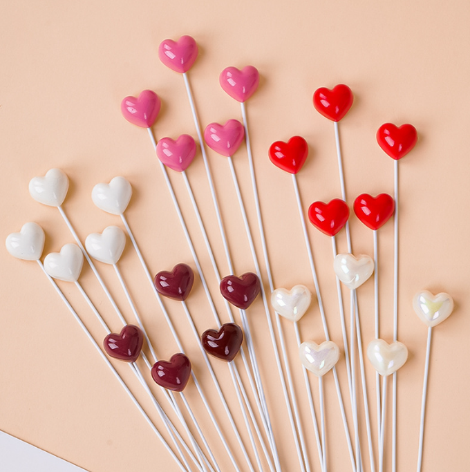 5 pcs resin heart Valentine Day cake topper