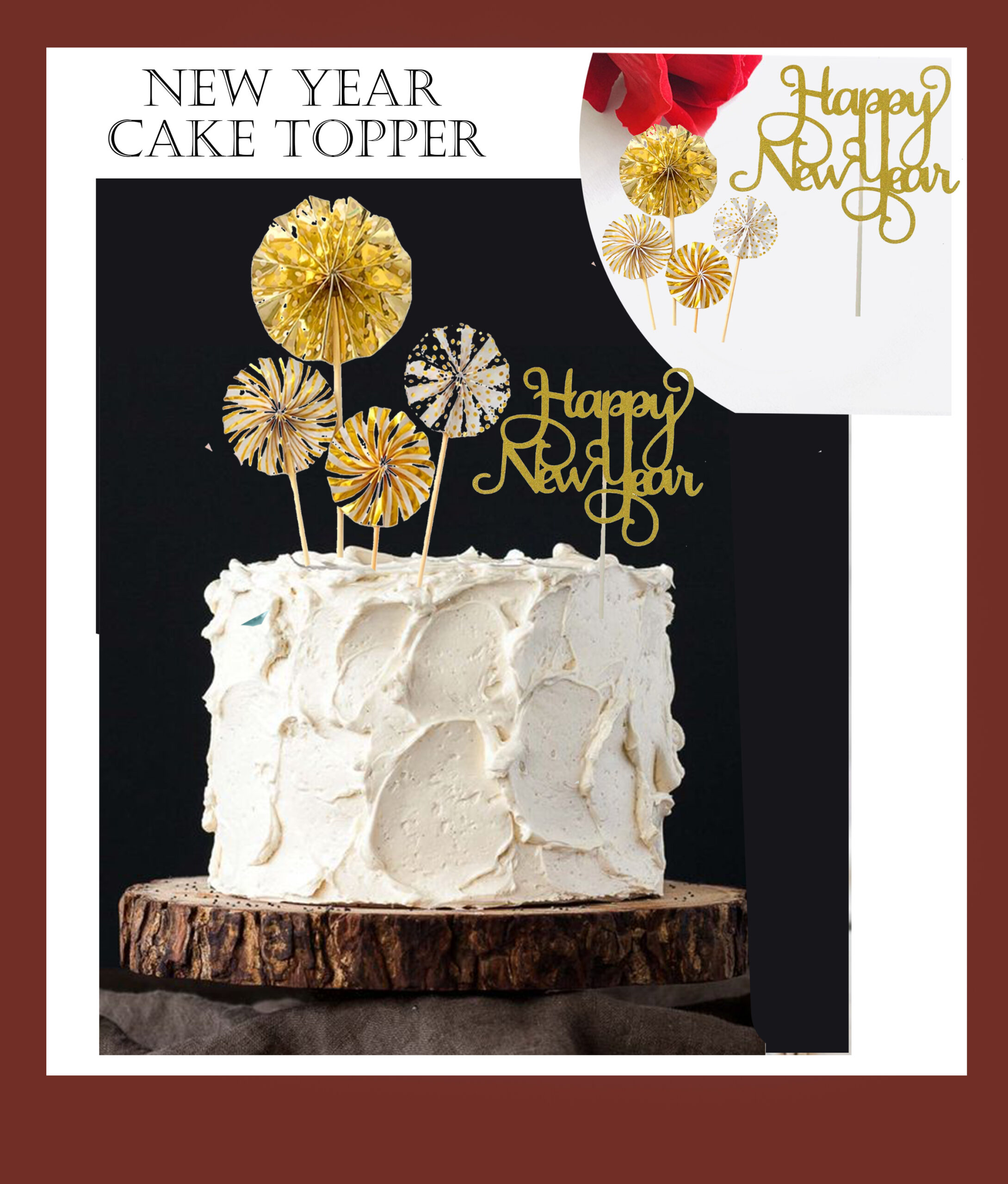 Home Christmas 5 pcs set golden fans and happy new year cake topper set