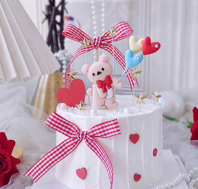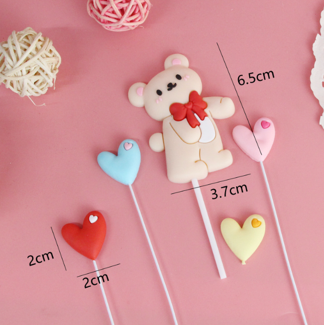 5 pcs teddy love cake toy topper