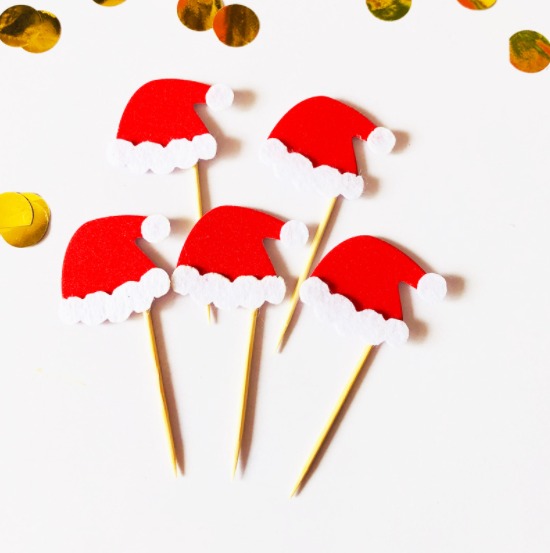 6 pcs Christmas santa cap cupcake topper
