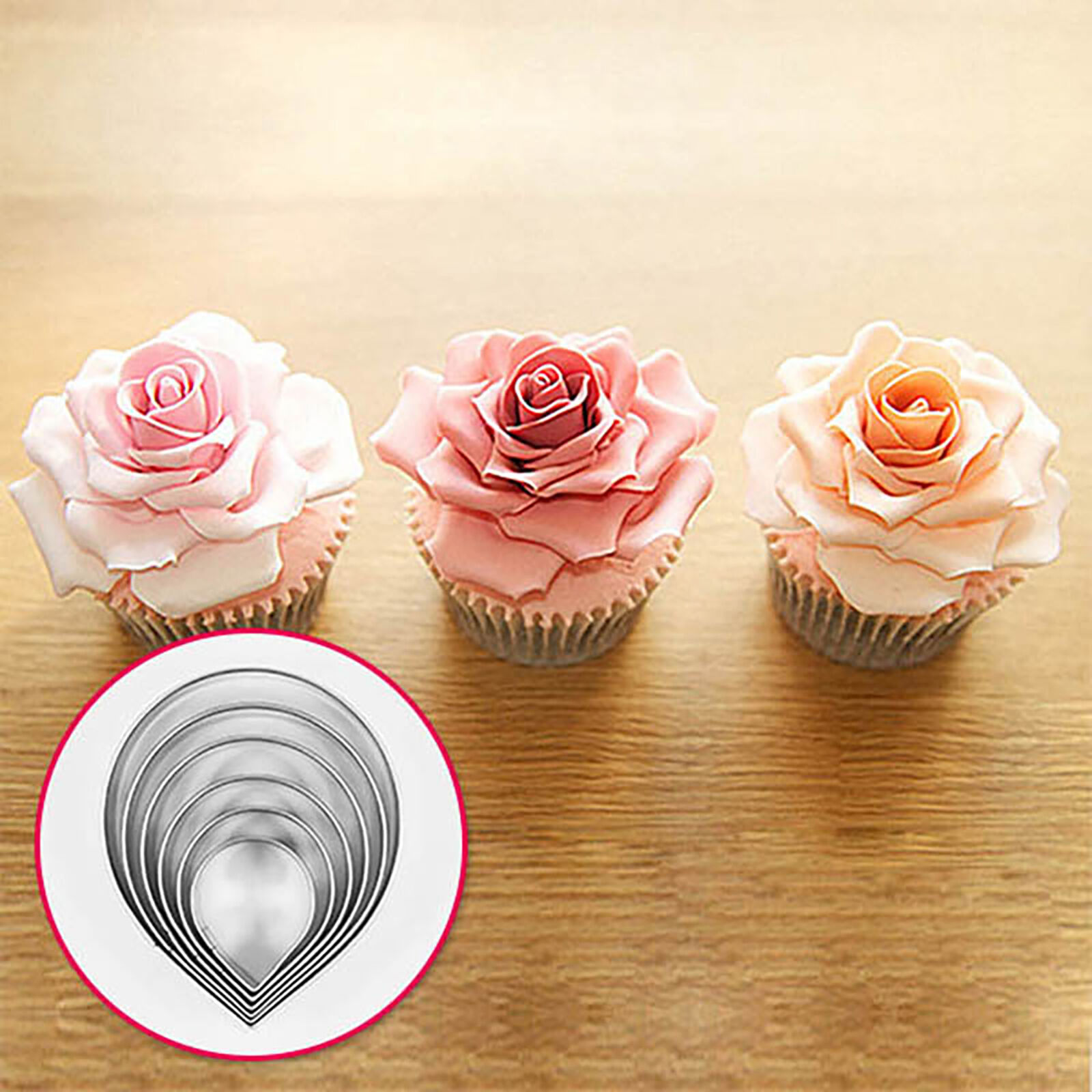 6 Pcs Rose flower Fondant Sugar craft Stainless Steel Cutter set