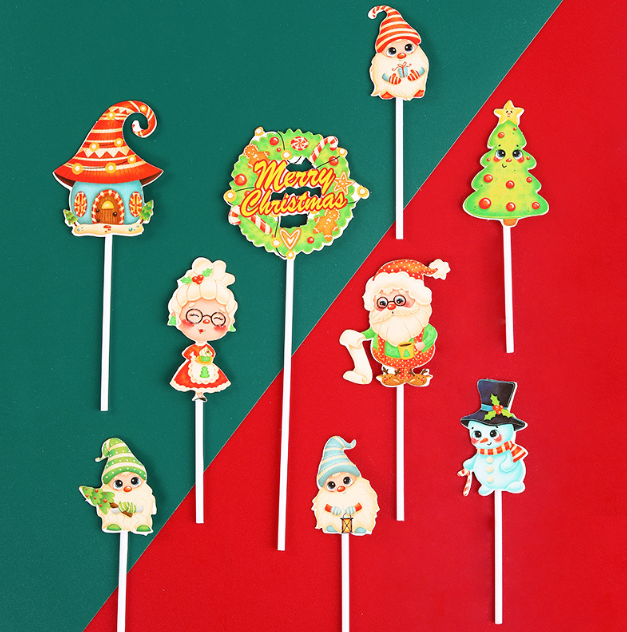 9 pcs Christmas theme cake Cupcake topper set style 17