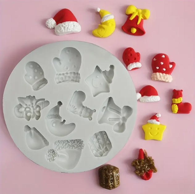 Large mould santa , reindeer, jingle bells christmas theme silicone mould