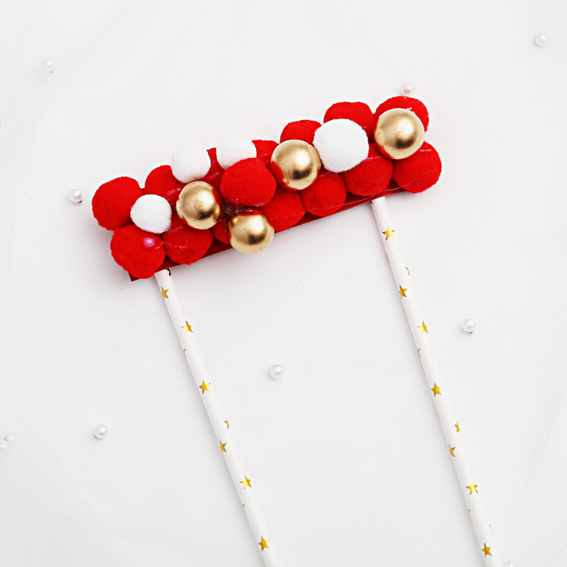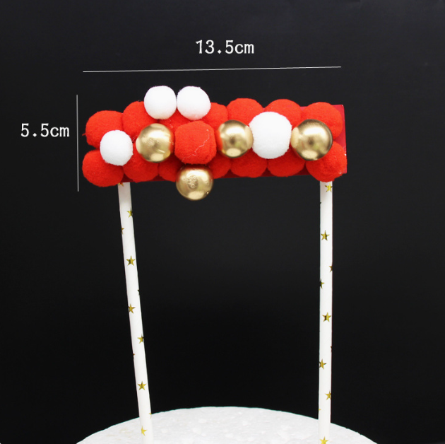 Home Toppers Christmas Red and white Curved Soft Balls with Gold Pearl Cloud