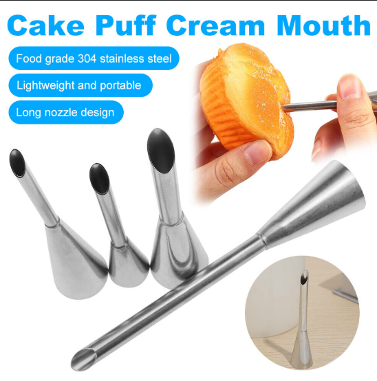 Home Pipping Tips Cream Puff Filling Tip,Eclair Piping Tip,Long Puff Nozzle Tip Decorating Tool for Donuts,Cupcakes,Pastry,3 Pcs
