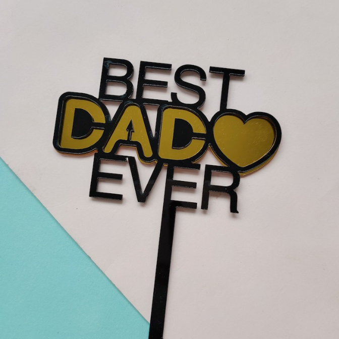 Double acrylic golden and black Best dad ever cake topper