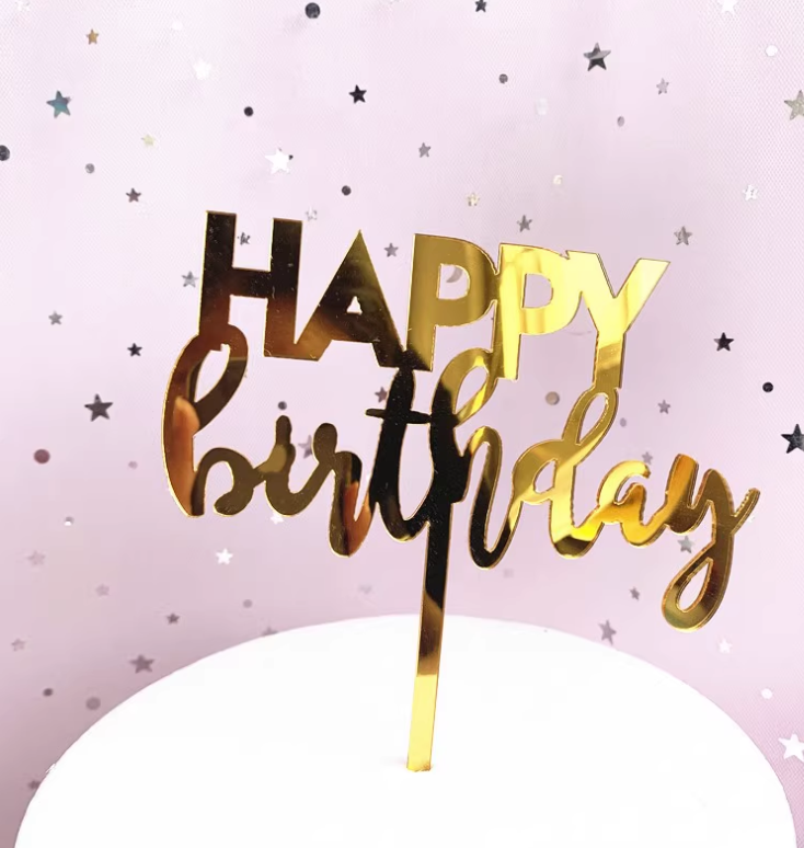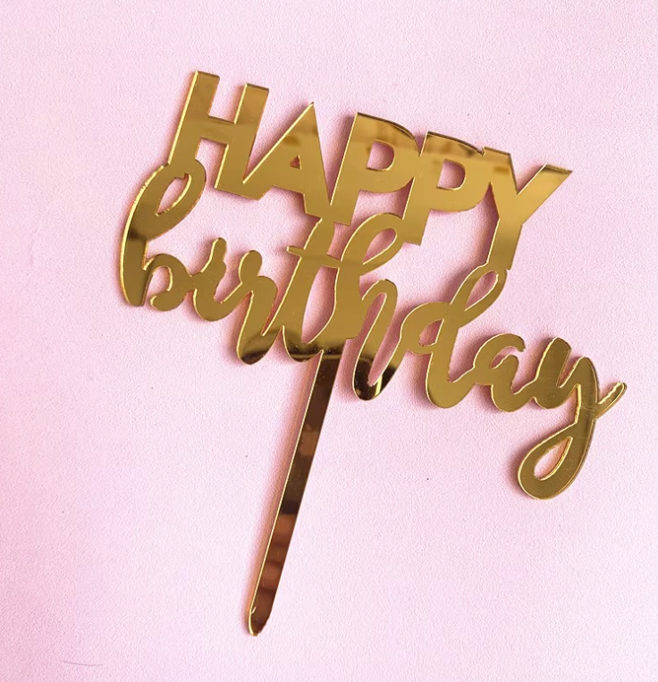 Golden font happy birthday cake topper