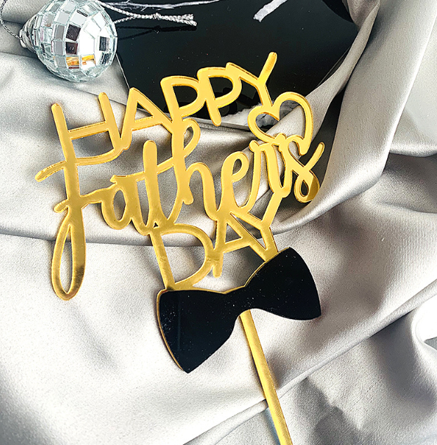 Happy Fathers day with Golden Bow cake topper Style 9 (Gold )