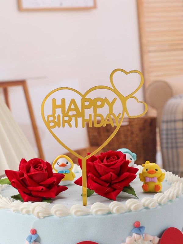 Home Toppers Acrylic Heart Shaped Gold Color Birthday Cake Toppers