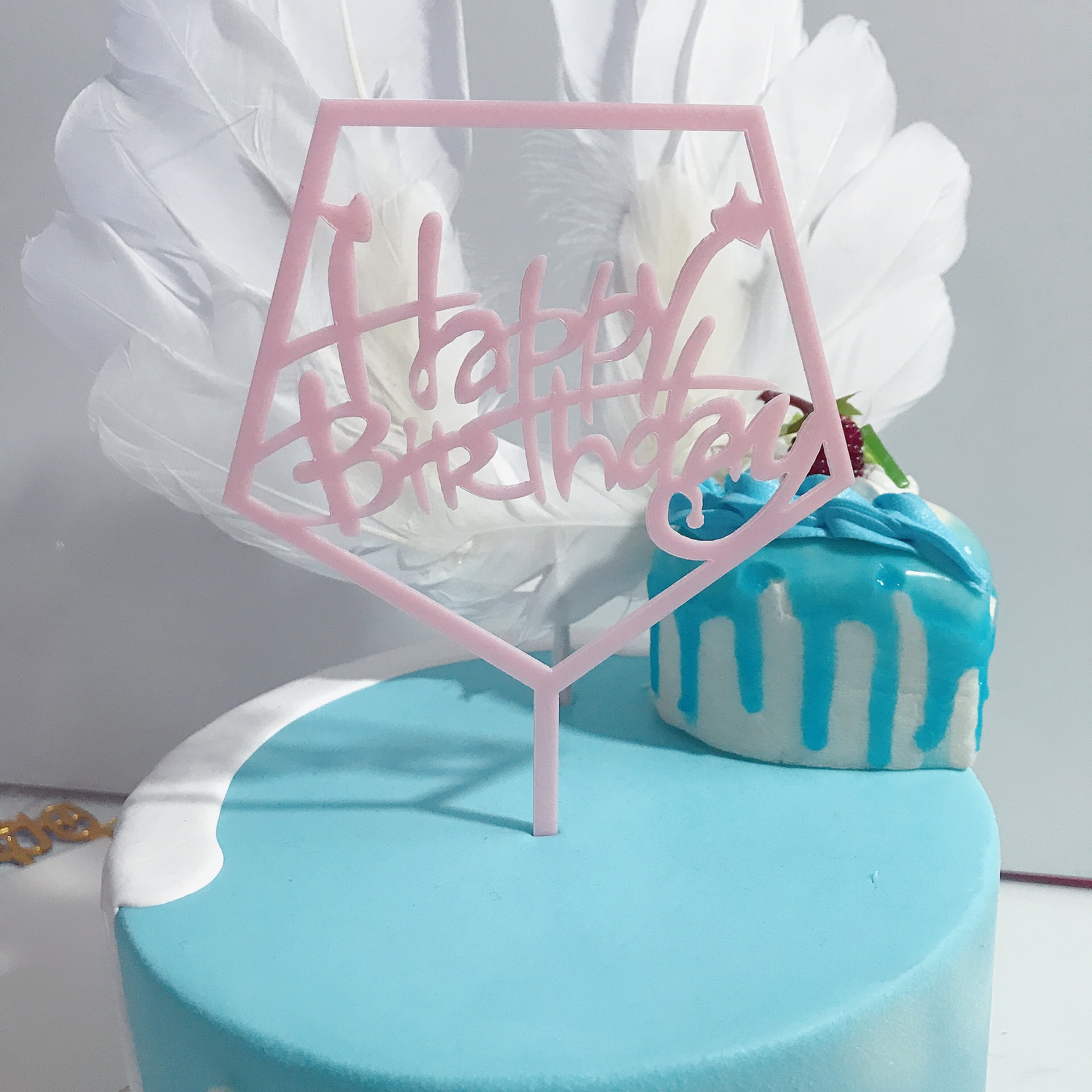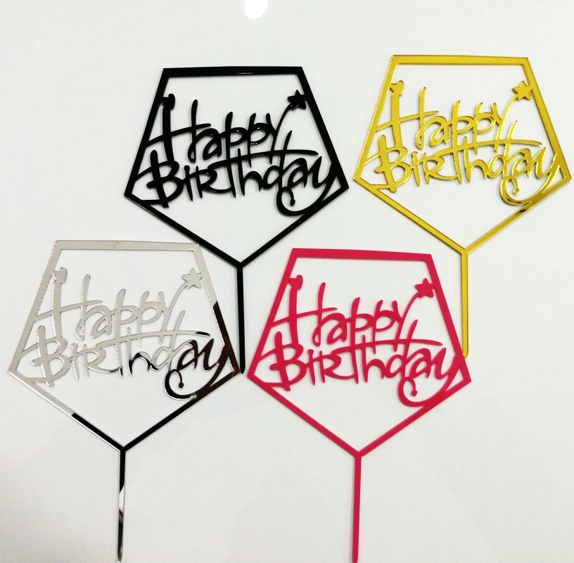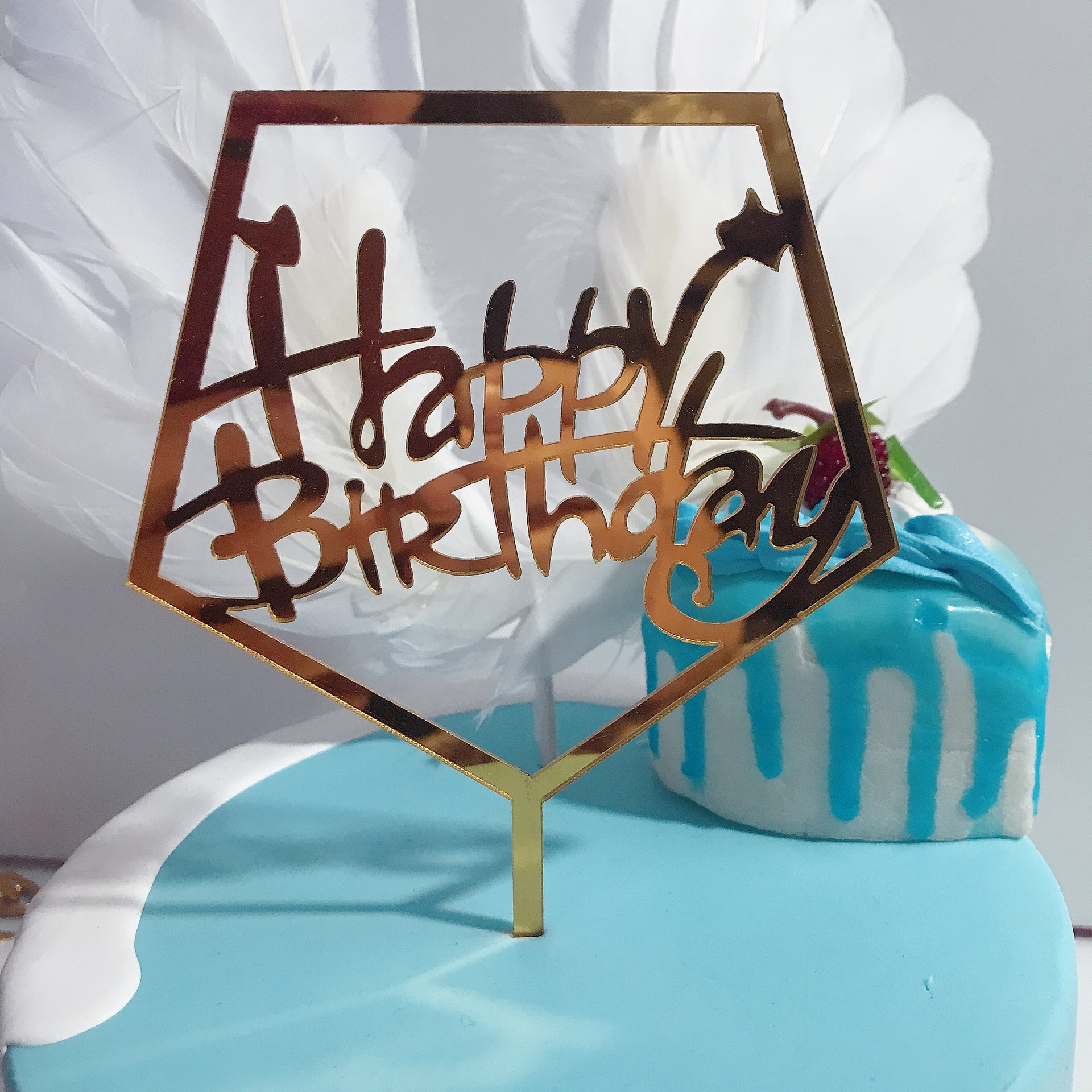 Hexagon shape happy birthday Acrylic Cake Toppers