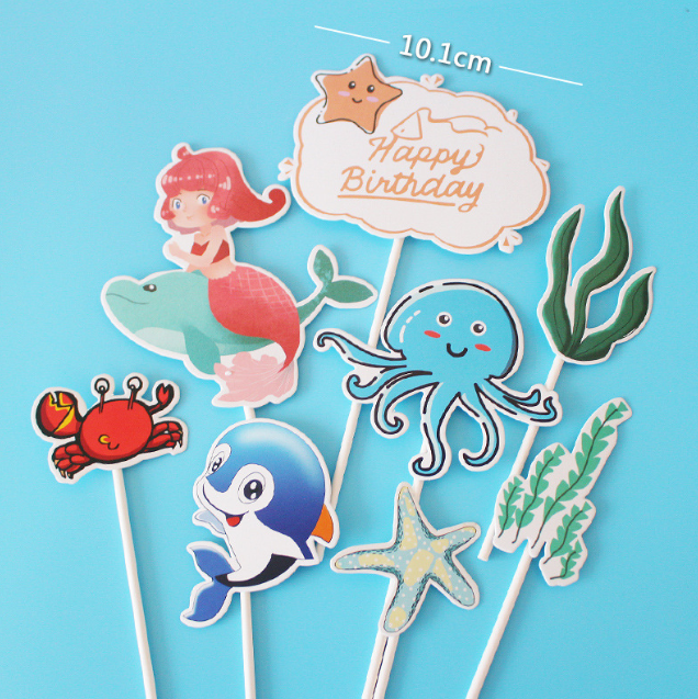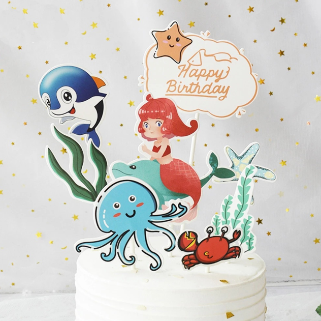 Mermaid sea Theme Cake Topper , 8 Pcs