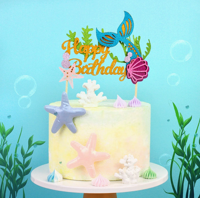 Mermaid theme Happy Birthday Cake topper