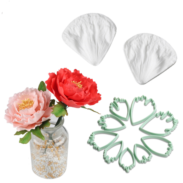 Peony Flower Veiner Silicone Mould and cutter Set style 2