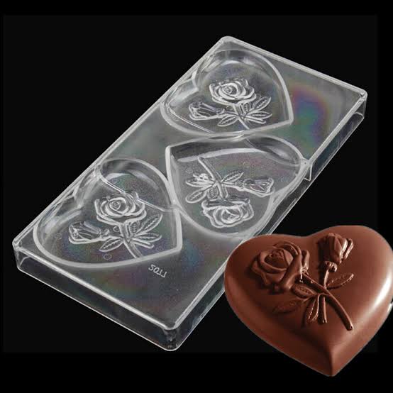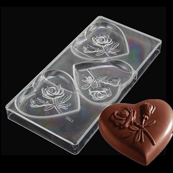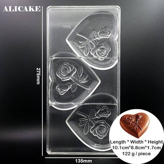 Polcarbonate 3 cavity heart with rose chocolate mould