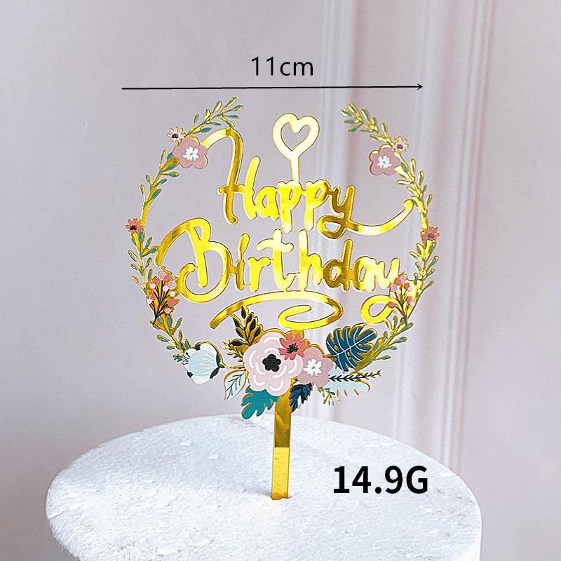 Home Toppers Acrylic Printed Flower heart garland happy birthday cake topper