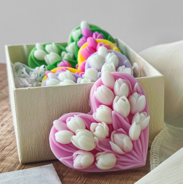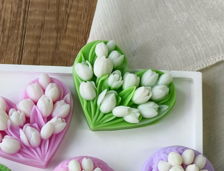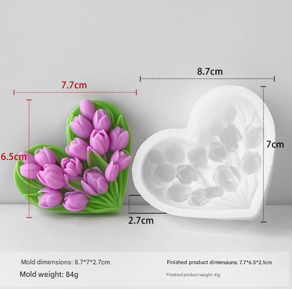 Home Candle Moulds Tulip Heart Flower theme Silicone Mould for Resin, soaps ,Candle Mould