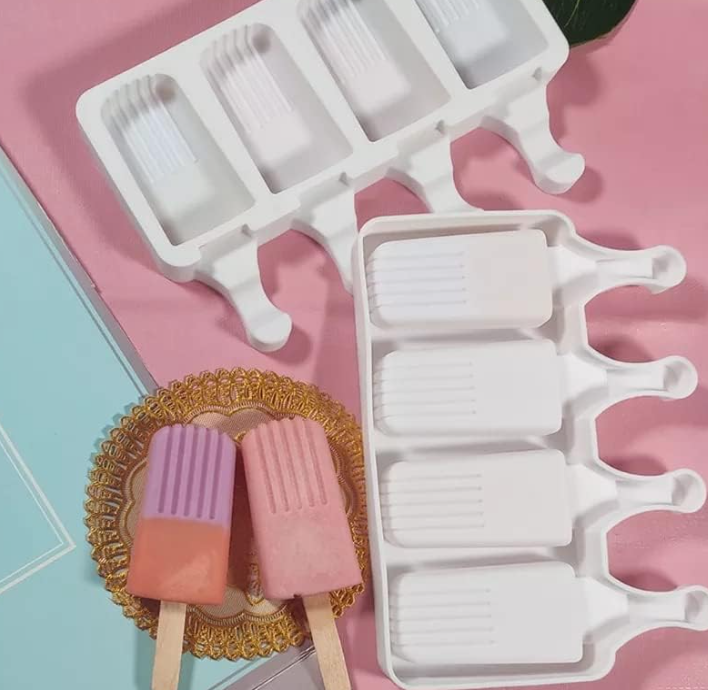 4 Cavity Rectangle ice cream theme Silicone Popsicle Cakesicle Mould